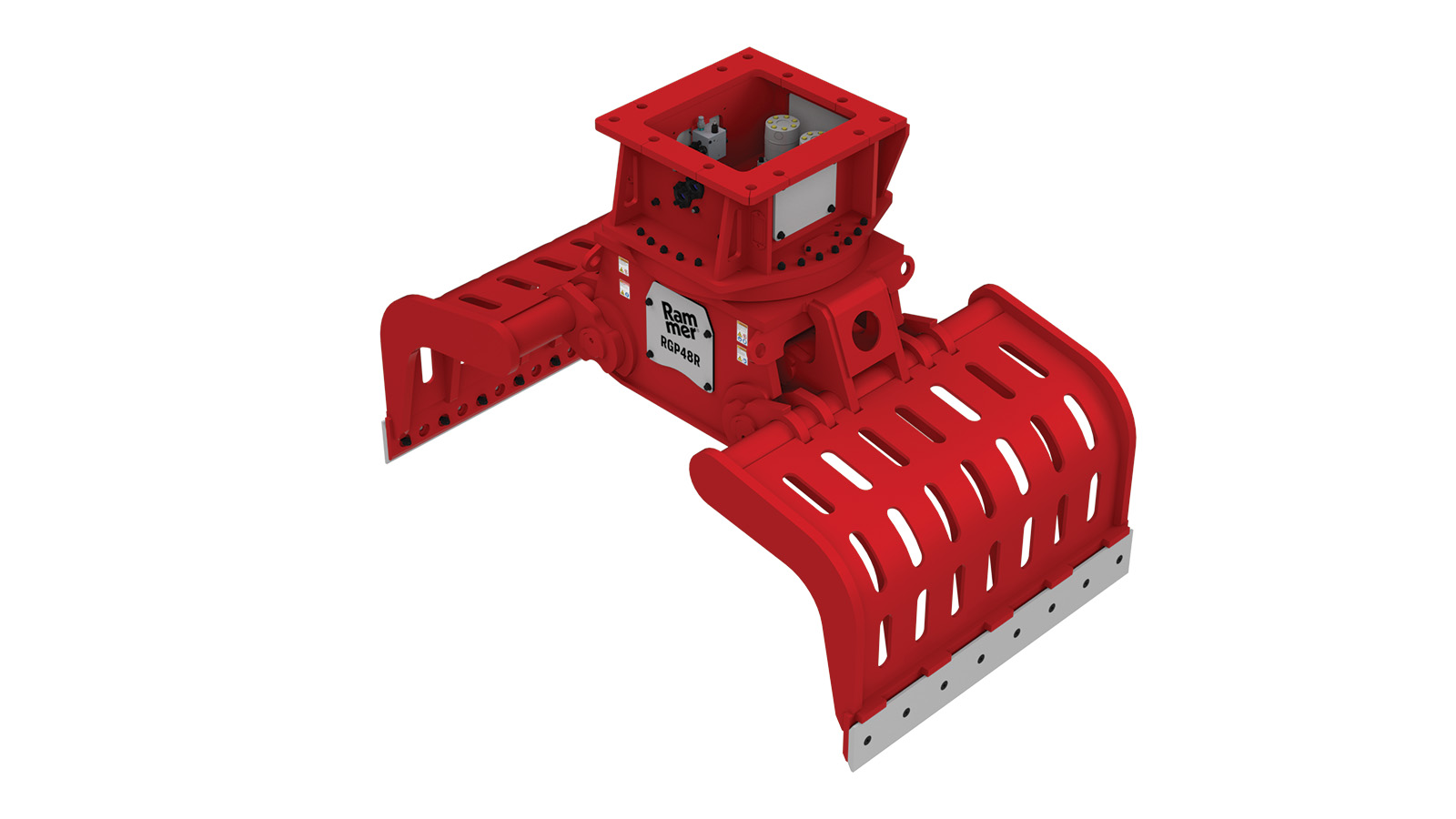 The RGP48R is optimized for 35–60 ton (77,100–132,300 lb) excavators, providing reliable performance under heavy loads. Its 2,450 mm (96.5 in) opening allows operators to manage large material volumes efficiently on demanding jobsites.
