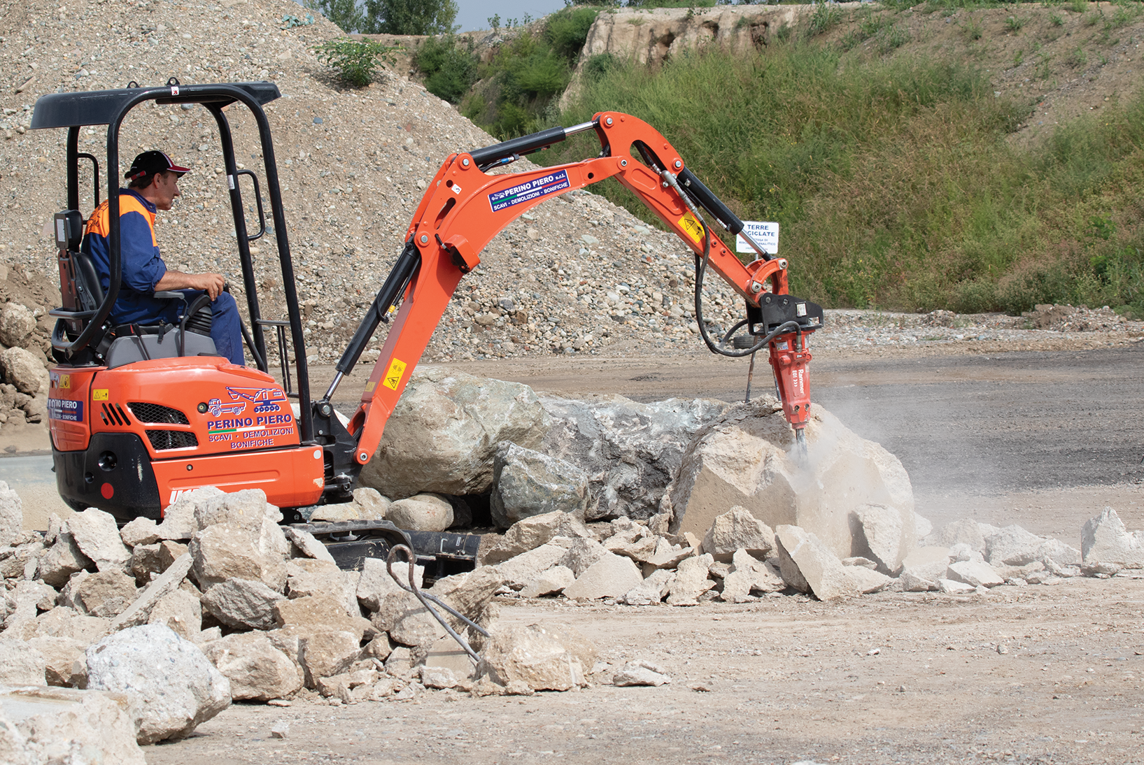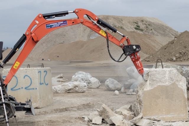 Demolition of larger pieces on the ground (size reduction, separation and preliminary sorting tasks) - Recycling