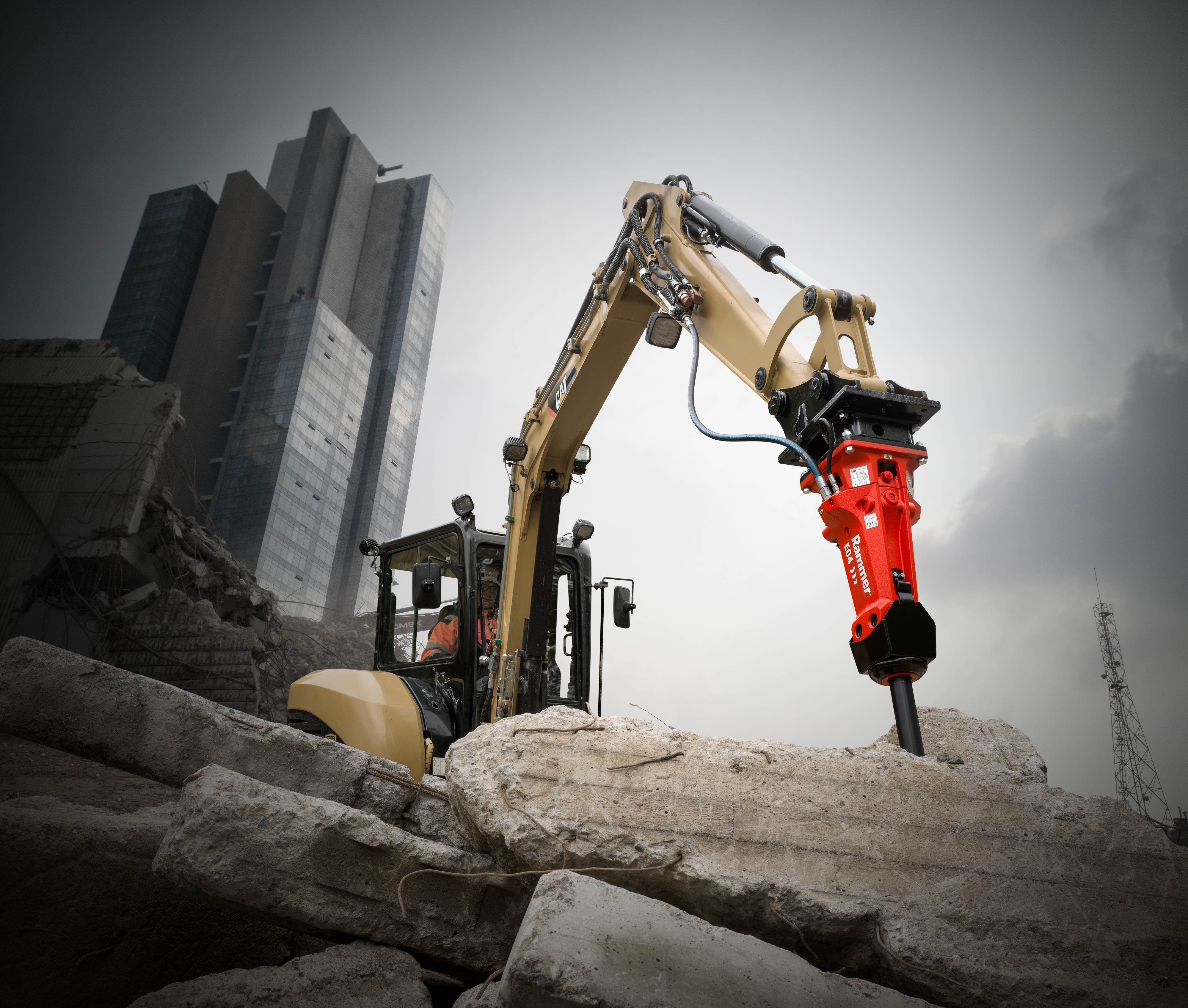 Rammer E04 compact range hydraulic hammer is suited for carriers in the 1.2 to 6.0 ton range.