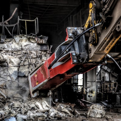 Demolition of larger pieces on the ground (size reduction, separation and preliminary sorting tasks) - Recycling